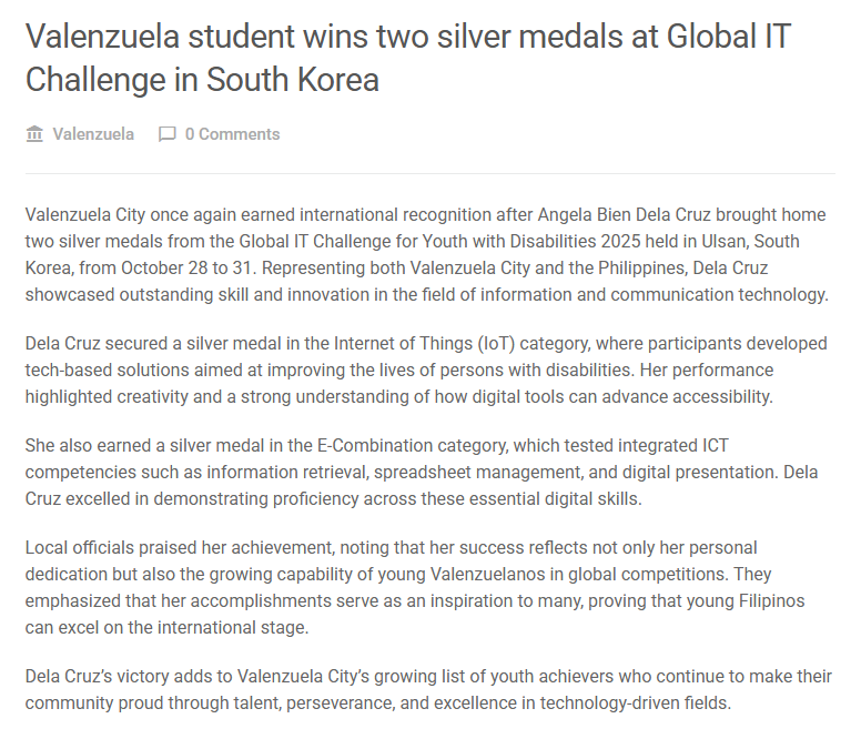 2025 [Philippines] Press Release for 2025 GITC Final Round Page info Name Master Hit: 8 Date 26-01-07 19:49 Contents - Link https://valenzuela.metronewscentral.net/valenzuela/metro-cities/valenz… List 이전글 [Philippines] Press Release for 2025 GITC Final Round 다음글 [Vietnam] Press Release for 2025 GITC Final Round